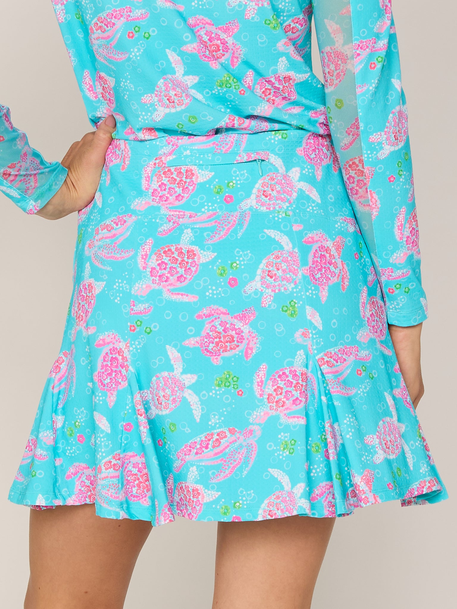 Flare Godet Skort In Car. Turq. Turtle