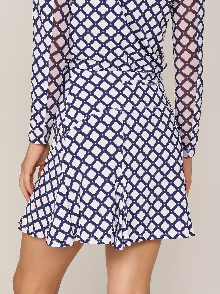 Flare Godet Skort In Small Circle Navy