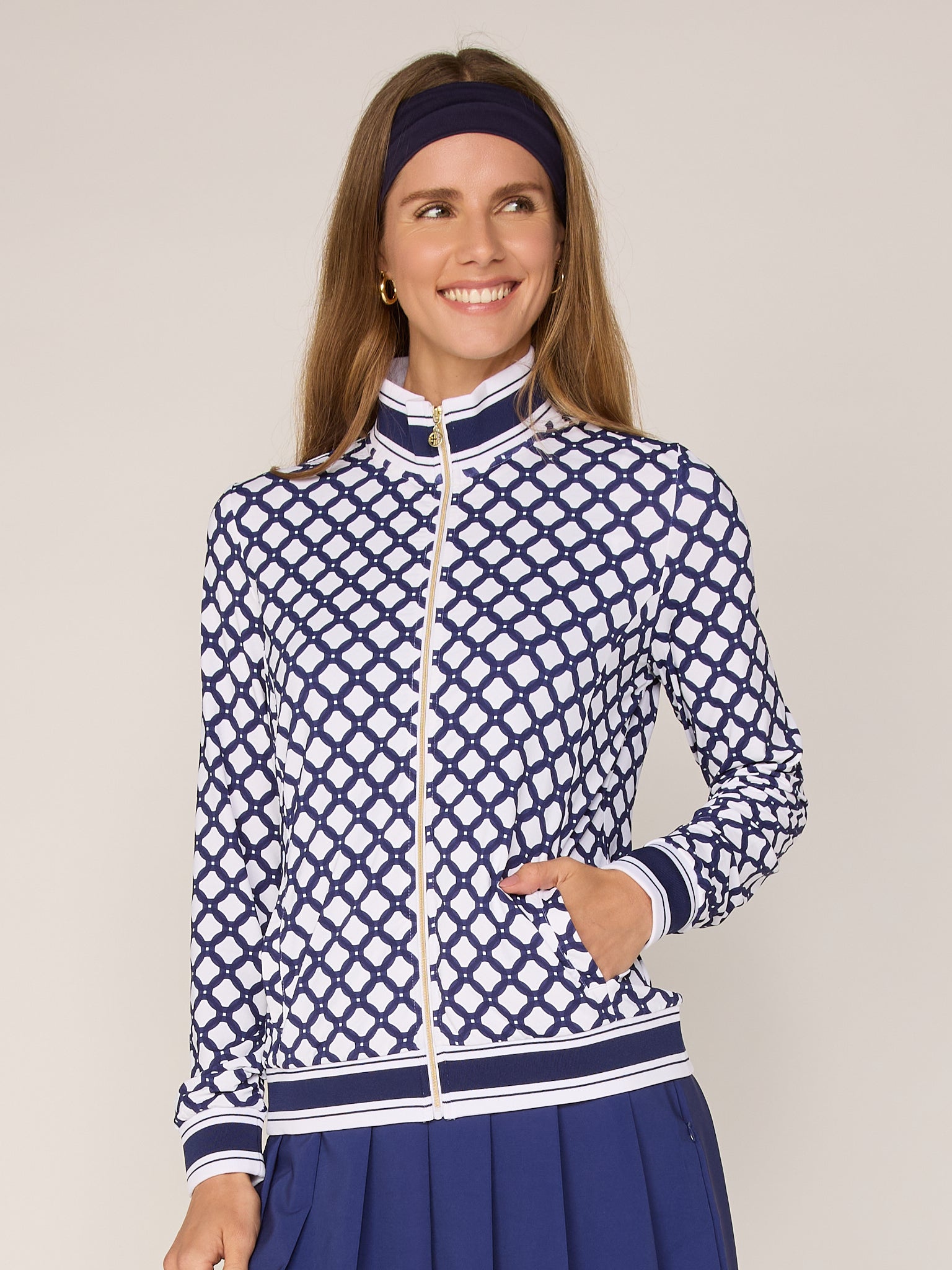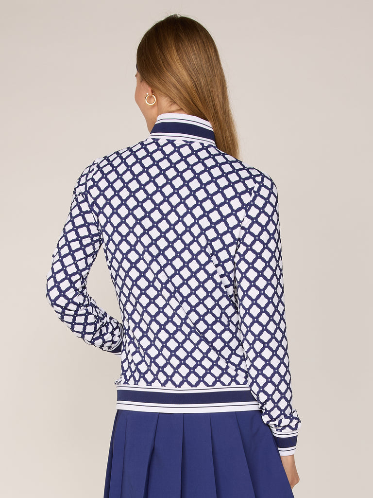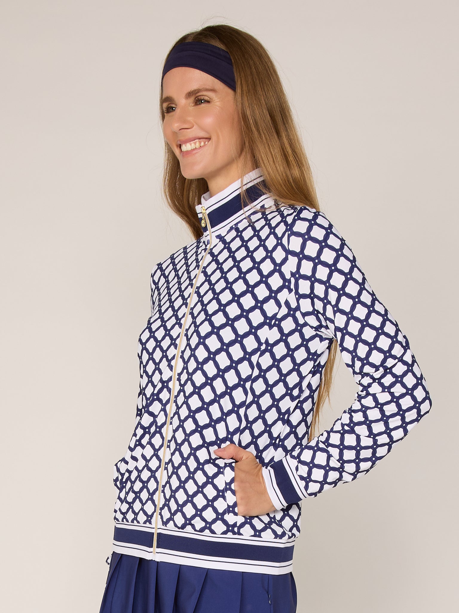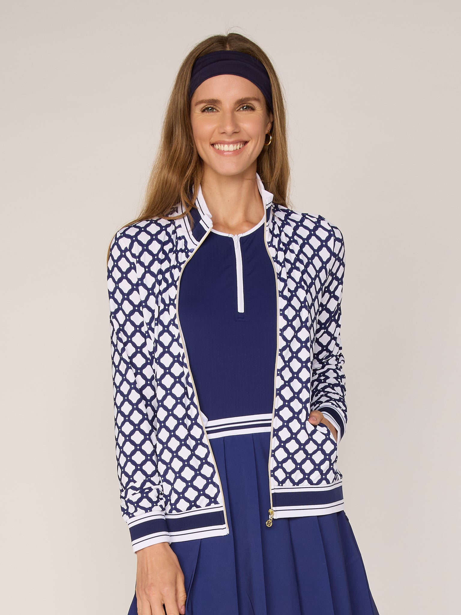 Striped Trim Performance Zip Jacket in Small Circle Navy