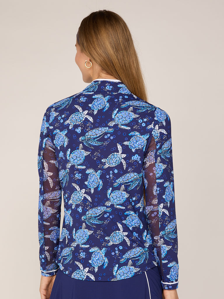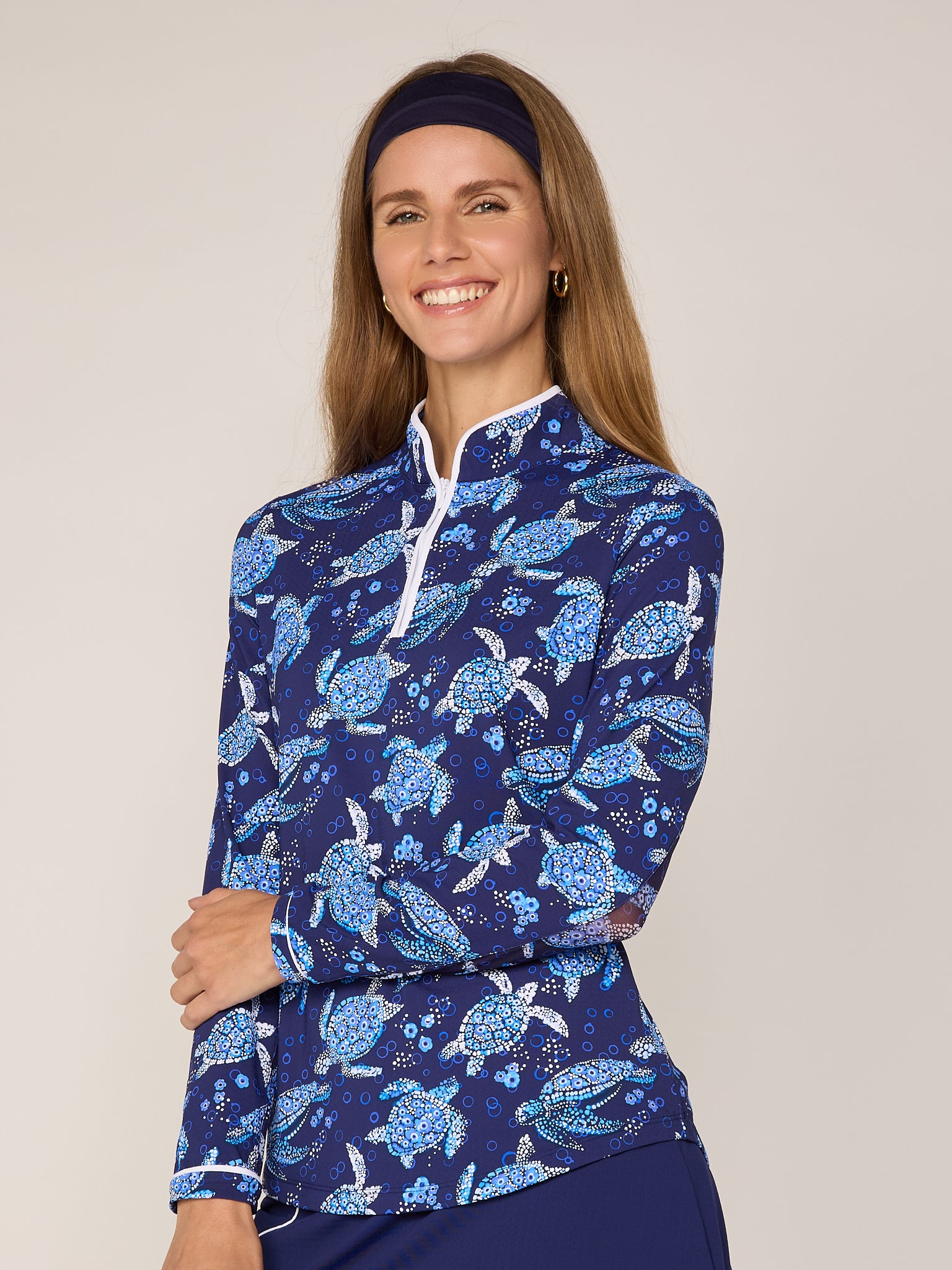 Binding Quarter Zip Long Sleeve Top in Navy Turtle