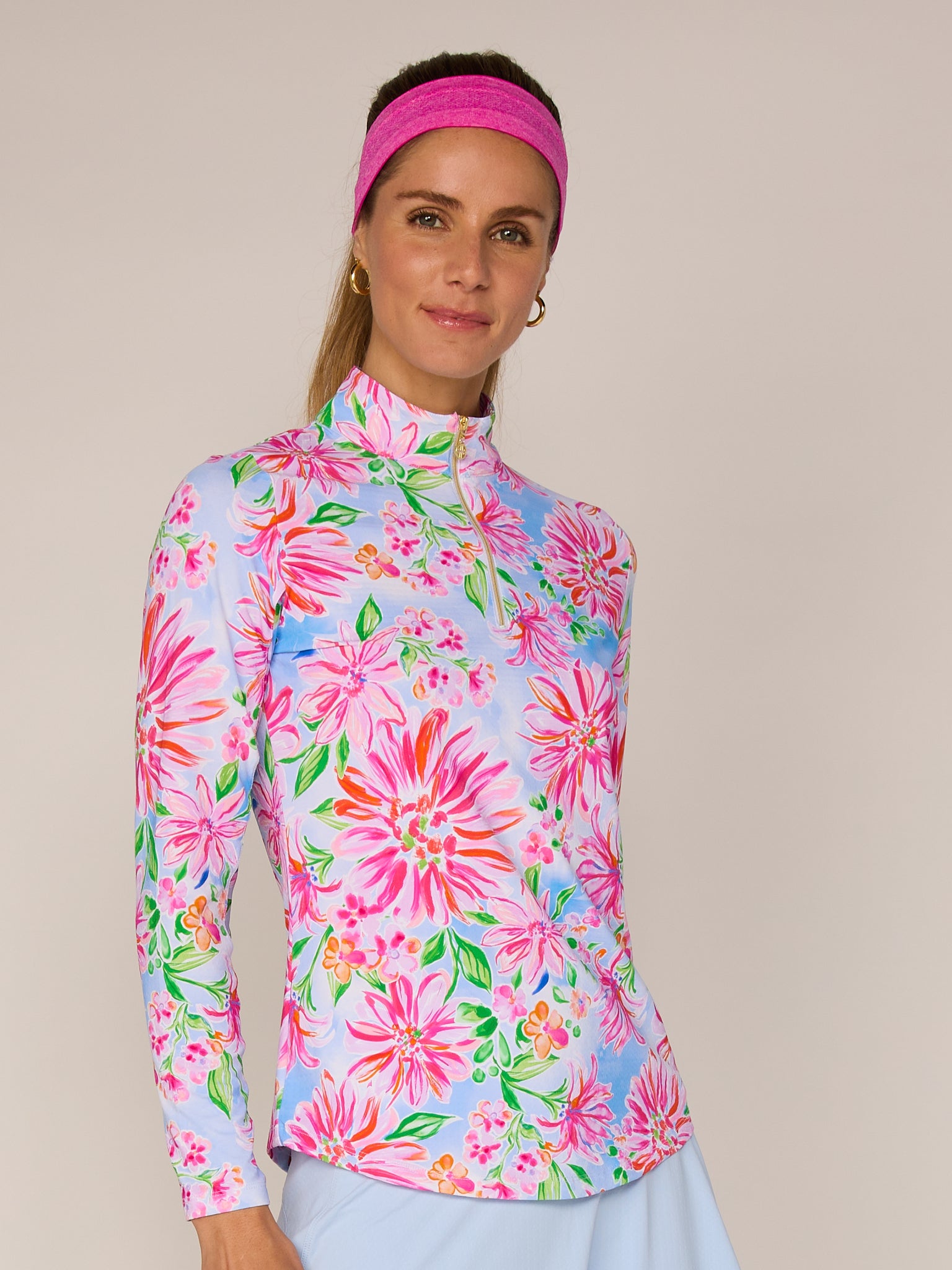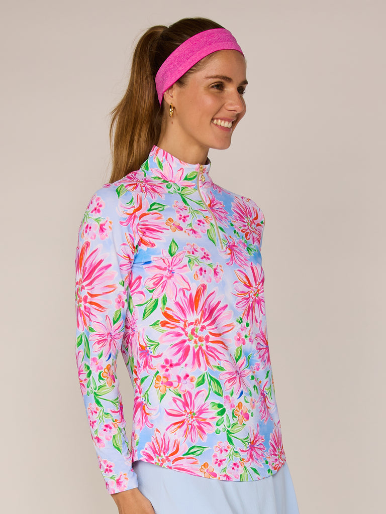 Quarter Zip Sun Protection Top In Flower Garden