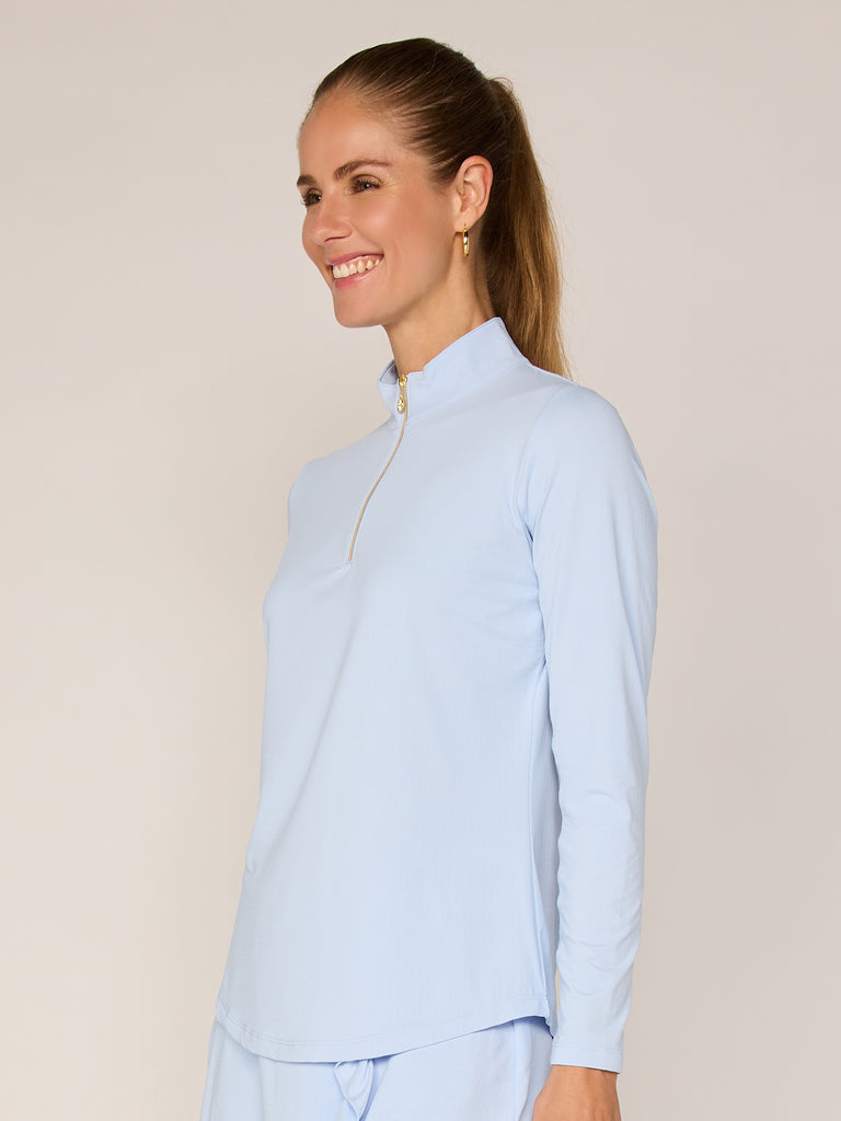 Quarter Zip Sun Protection Top In Sky Blue
